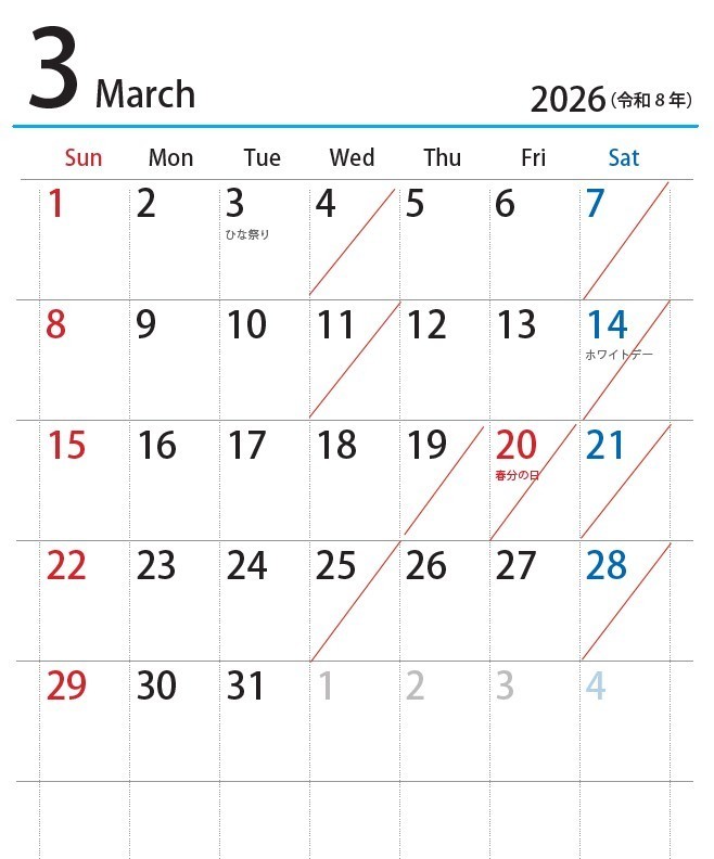 | 月 | 火 | 水 | 木 | 金 | 土 | 日 |